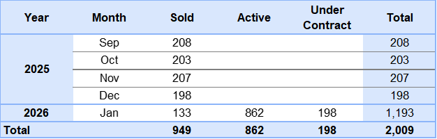 2025 Aug - 2026 Jan Summary Sold by Price Range